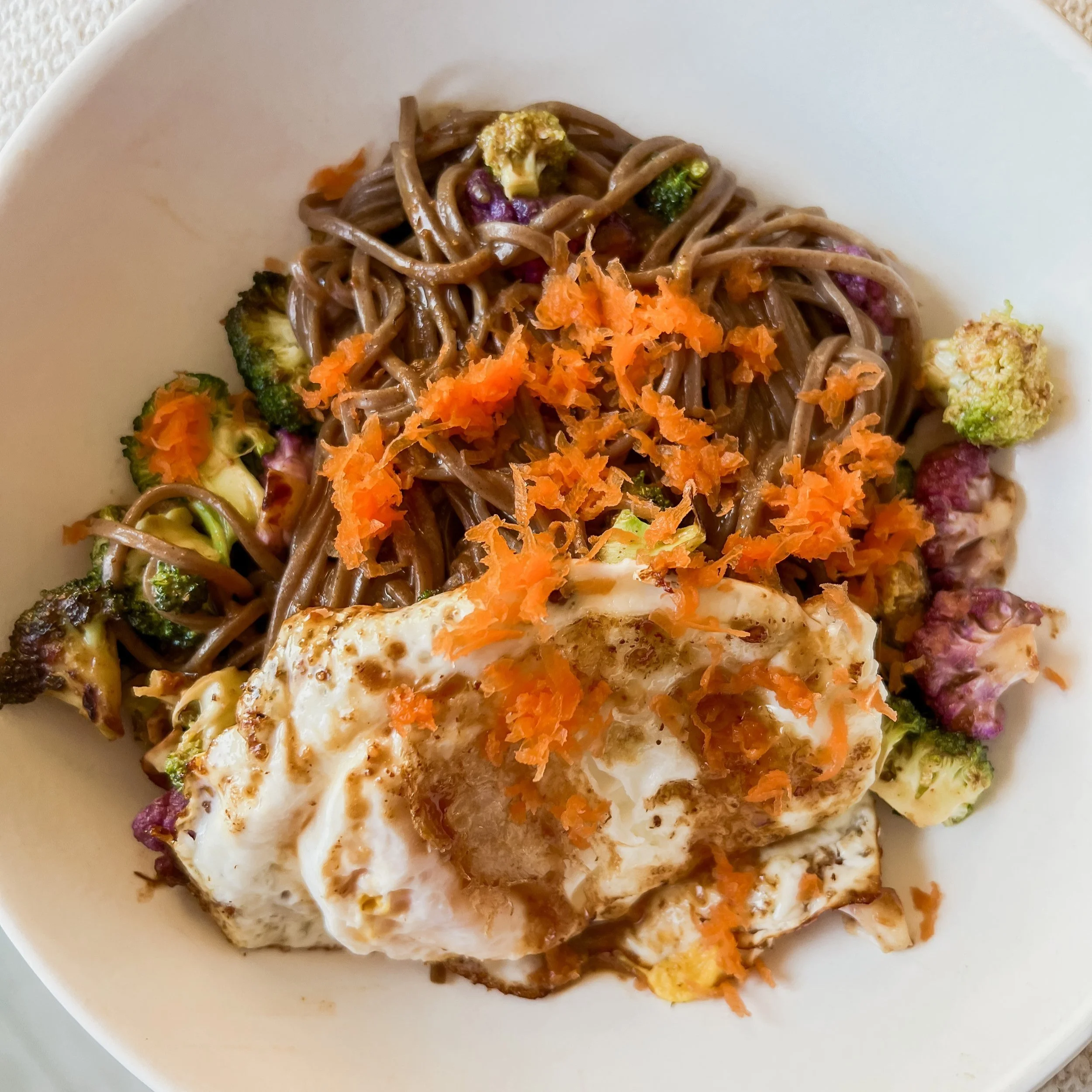1. Make Soba noodles as directed. Make sure to run under cool water when you strain them!