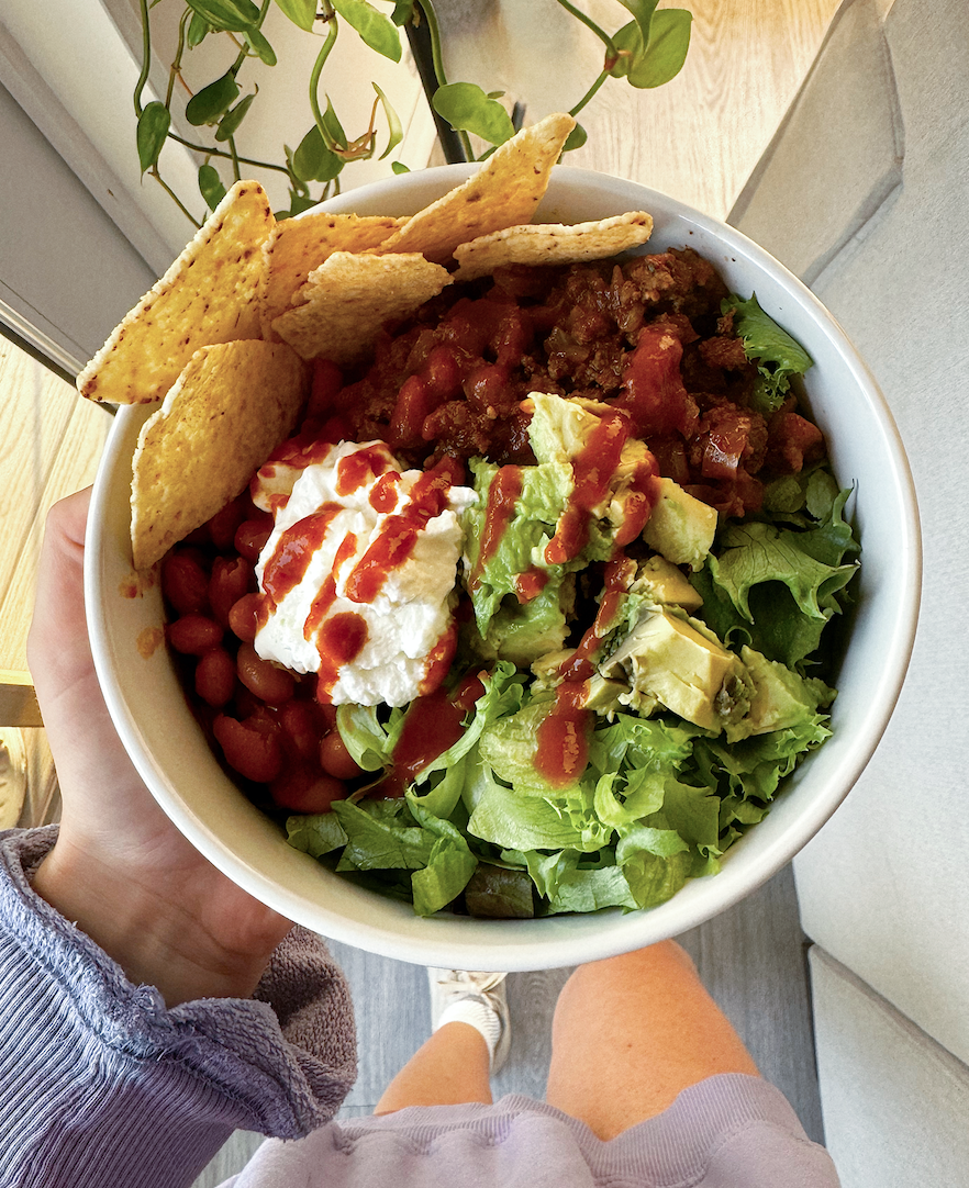 Taco night is always a favorite night of mine! We love to prep extra ingredients so we can have tacos or bowls for another meal or so! To make tacos more gut healthy I like to add chopped bell peppers and onions into the ground beef for extra fiber. We always use Siete taco seasoning and extras because the ingredients are so clean!