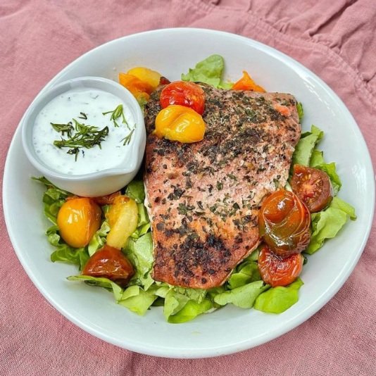 Wild Caught Salmon (for plant based option do roasted chickpeas)